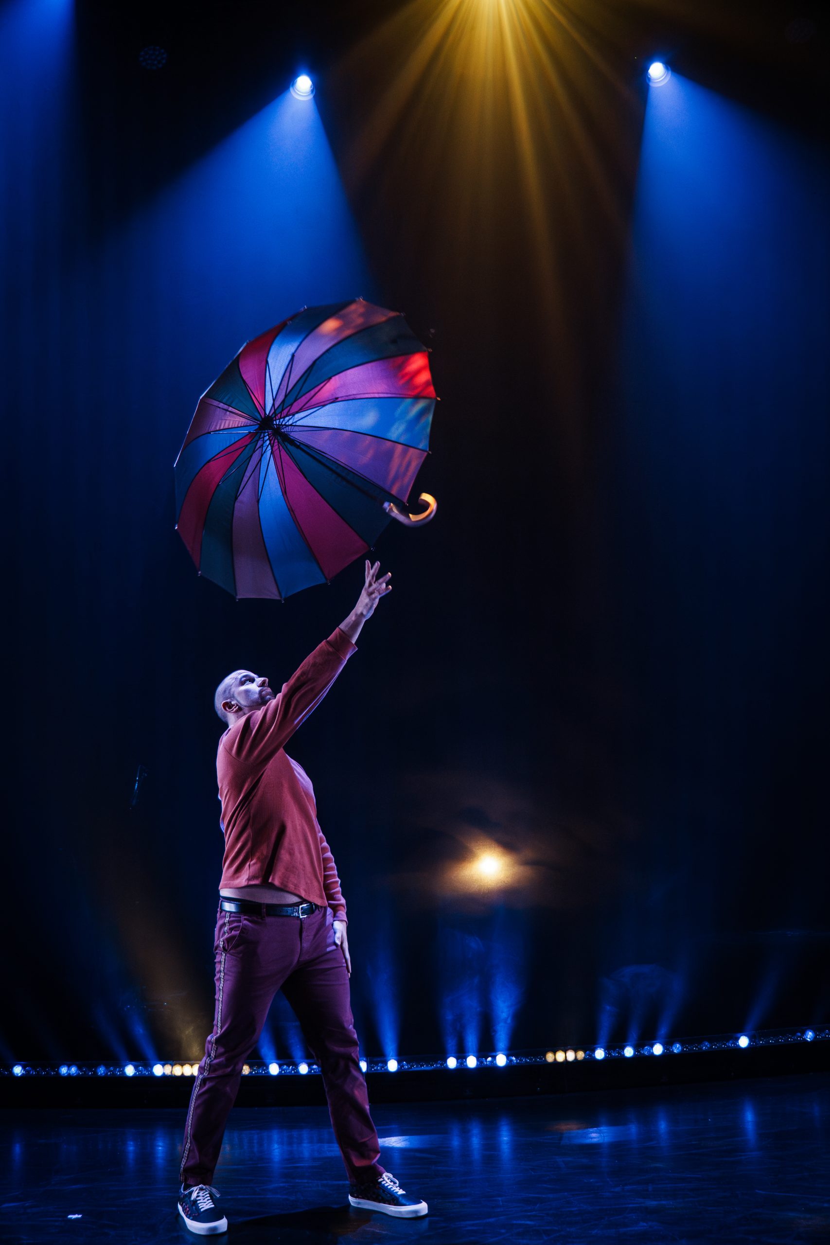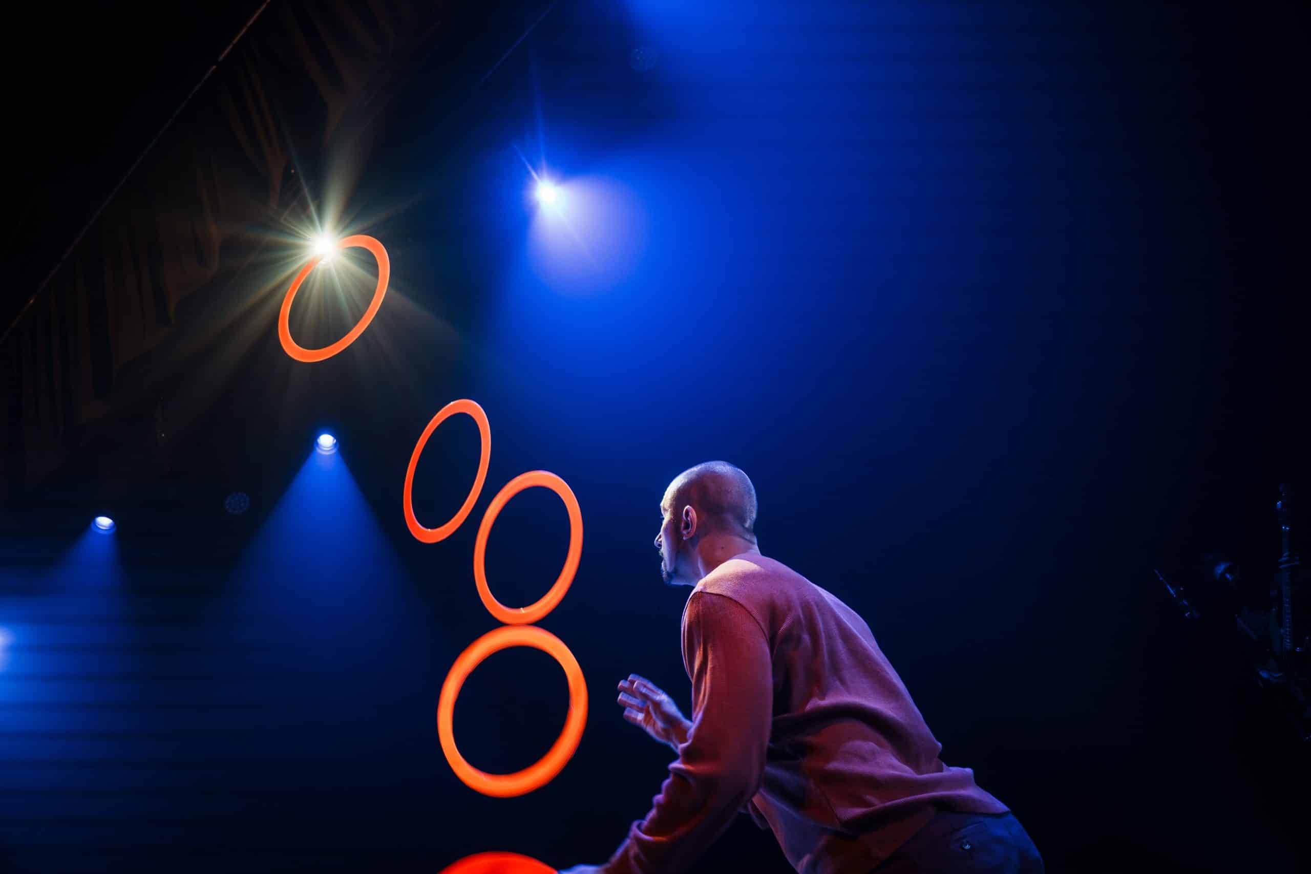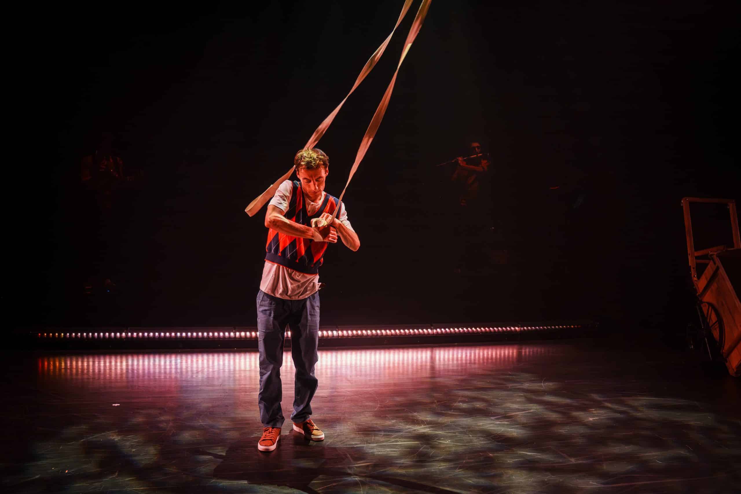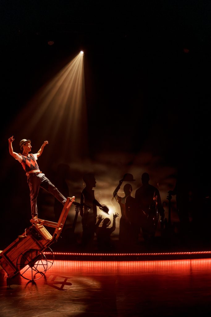 Une équipée joyeusement édulcorée et puissante portée par la musique en live, le comique du personnage et la maîtrise des artistes de cirque pour donner vie à la jonglerie, aux sangles aériennes et et aux corps fusionnant au rythme de la danse.
